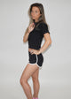 • Please note that contact with rough surfaces should be avoided since they can pull out the white fibers in the fabric, damaging the shorts.