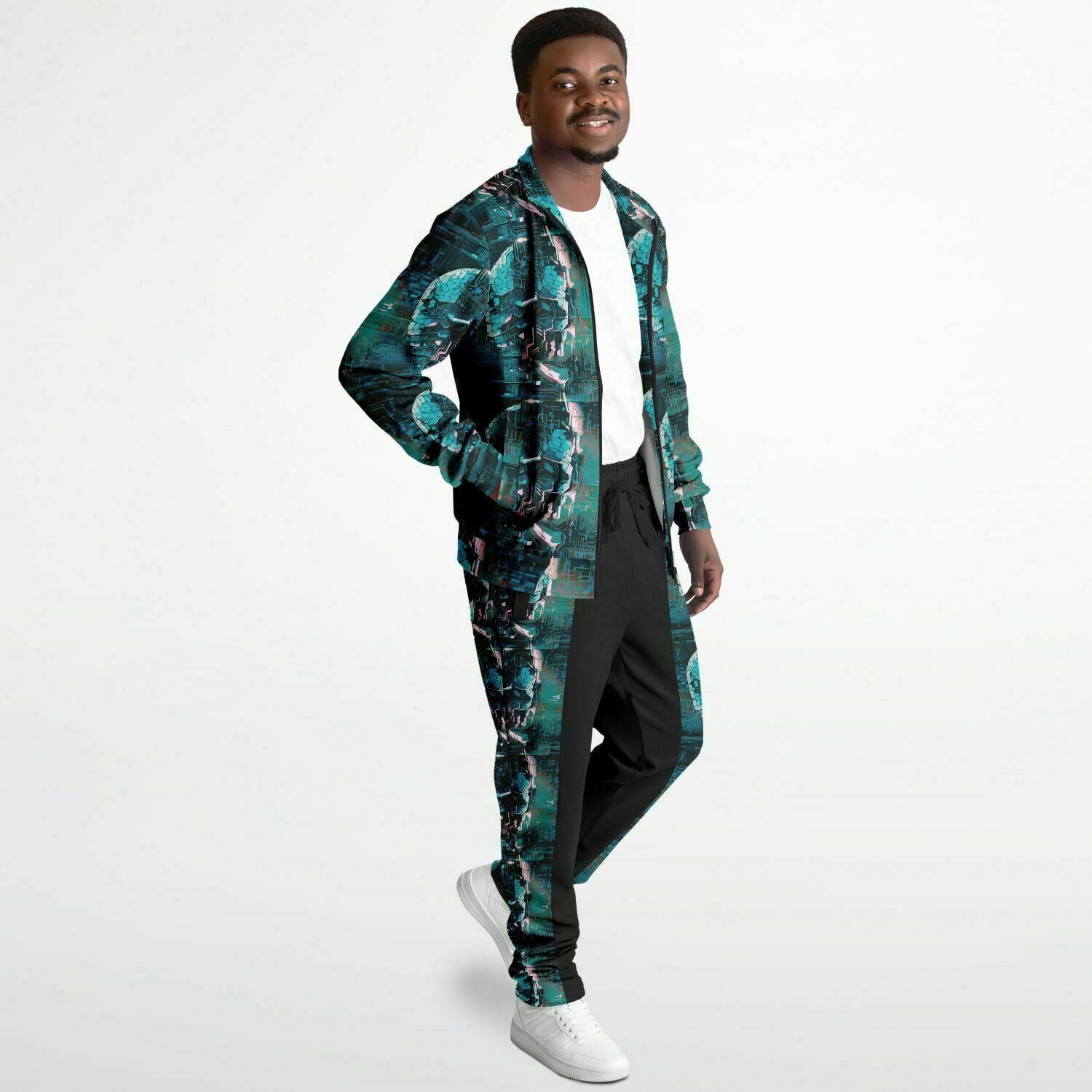 The smooth, tight-knit surface of the fabric ensures vibrant, detailed prints and colors. The tracksuit is as striking as it is comfortable, with a soft interior lining that feels great against the skin.