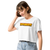 This crop top is made of 100% combed cotton, which makes the shirt extremely soft and more durable than regular cotton shirts. The relaxed fit and dropped shoulders ensure comfortable wear, while the cropped length makes it perfect for spring and summer.